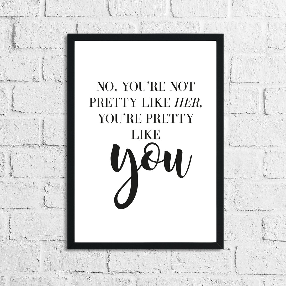 No You're Not Pretty Like Her Inspirational Simple Wall Home Decor Print