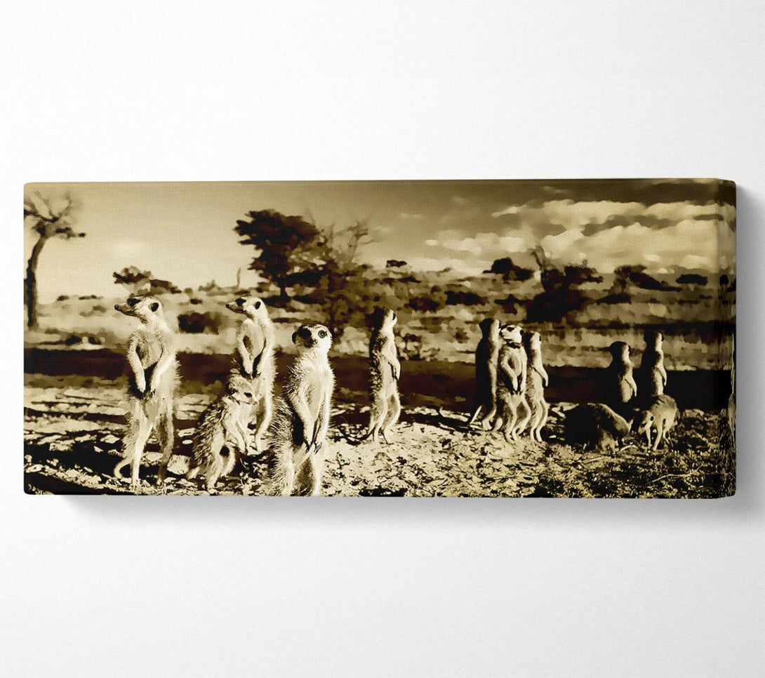 Picture of Noisy Meerkats Panoramic Canvas Wall Art