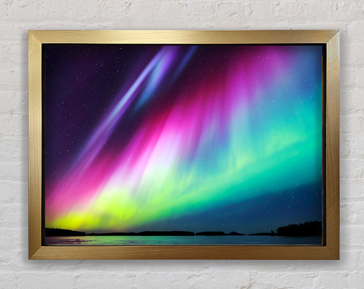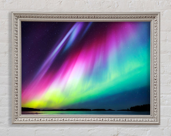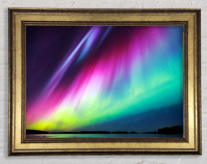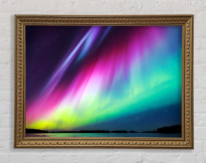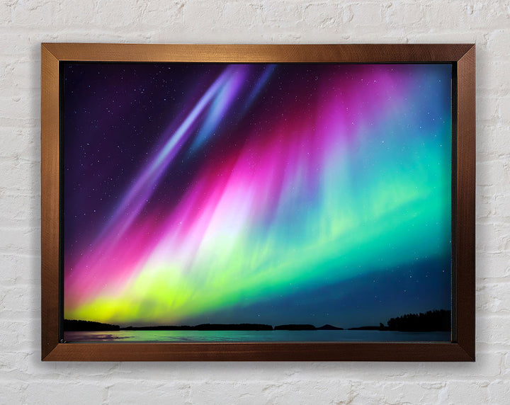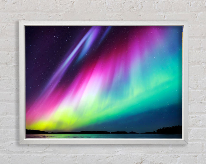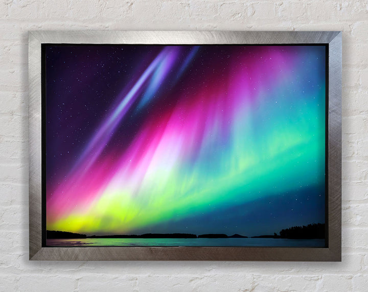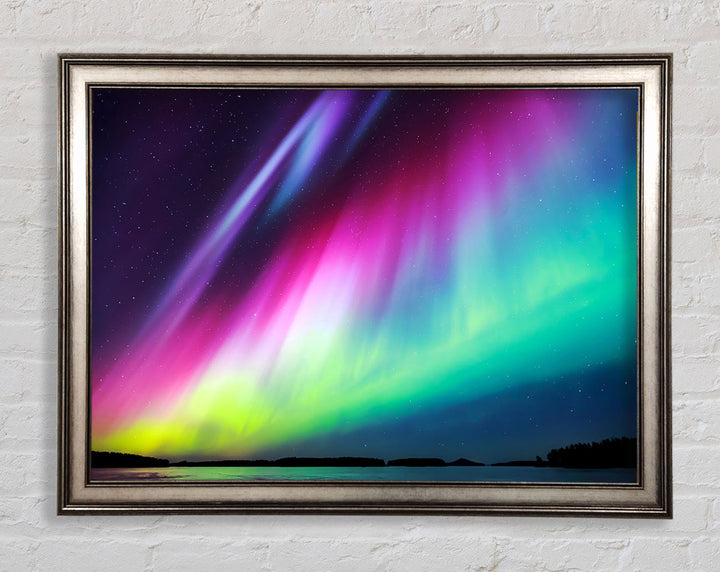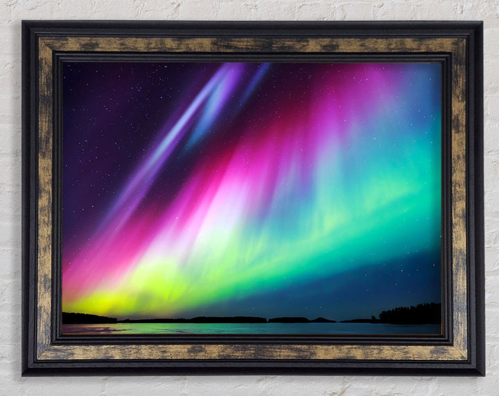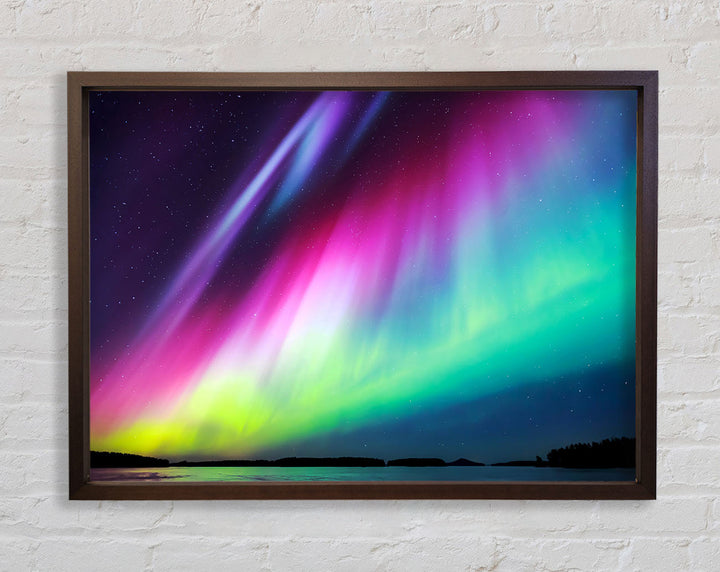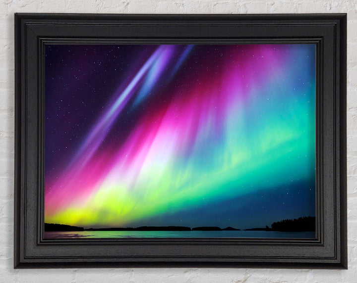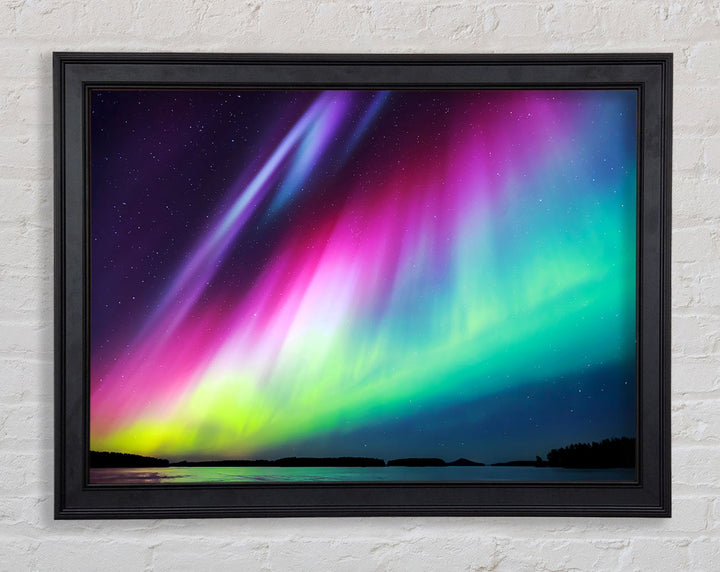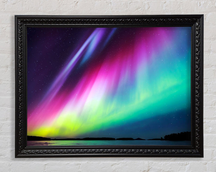 Illuminate your space with the mesmerizing beauty of our Northern Light Display Framed Print. This stunning piece of framed art captures the breathtaking colors of the aurora borealis, bringing a touch of natural wonder into your home. Available in six sizes, from small to oversized, it fits perfectly in any room. Choose from a variety of frame colors to match your decor. Each print is handmade in the United Kingdom, ensuring exceptional craftsmanship and quality. Ready to hang, it makes decorating simple and hassle-free. Transform your walls and let the enchanting Northern Lights inspire awe and serenity in your living space.