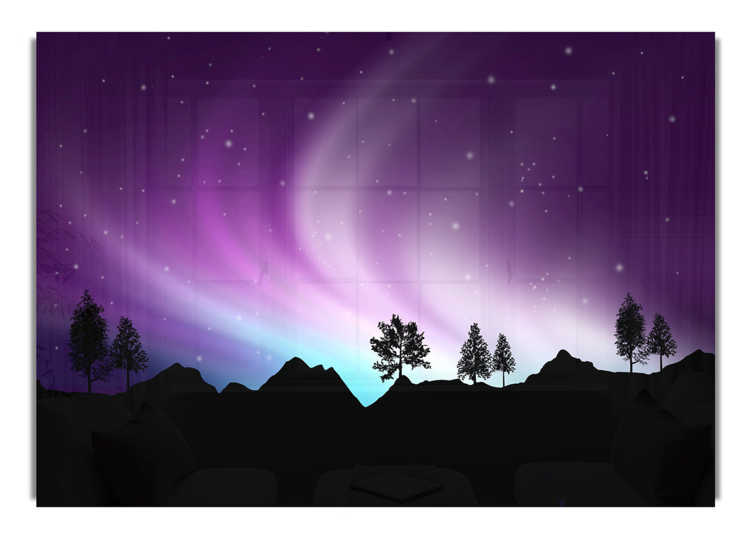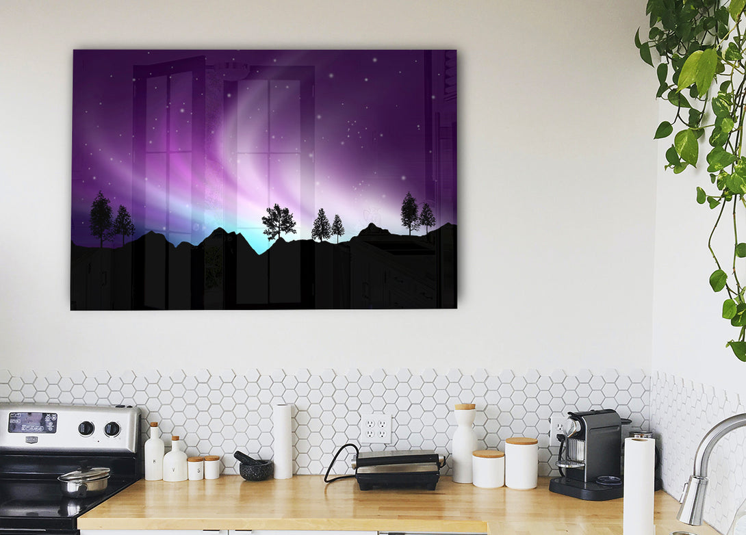 Northern Light Treeline acrylic print, UV printed onto 5mm thick acrylic glass. Comes with everything you need to hang on your wall.