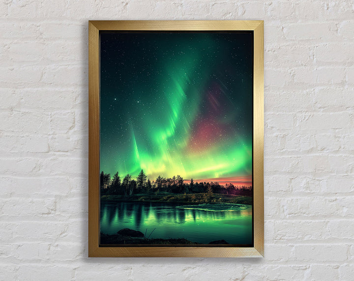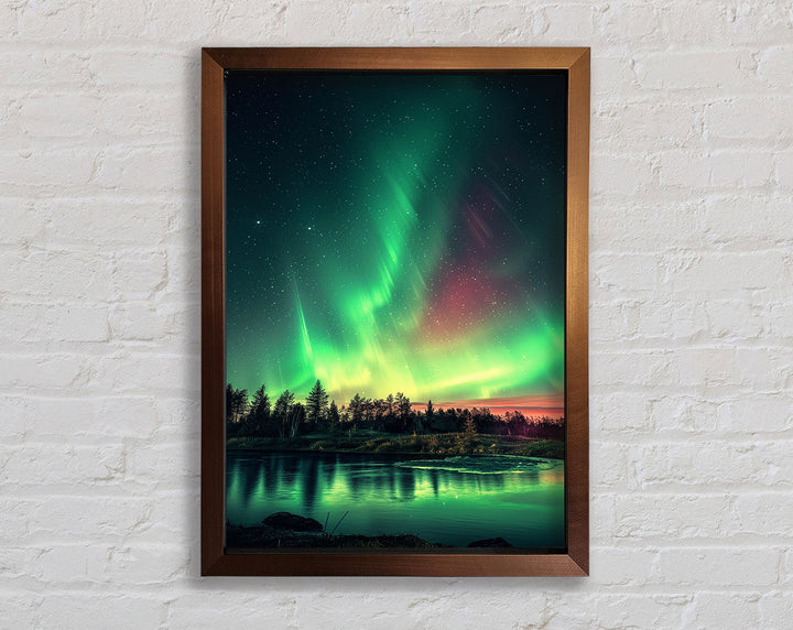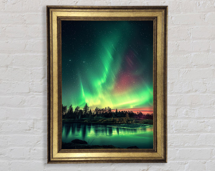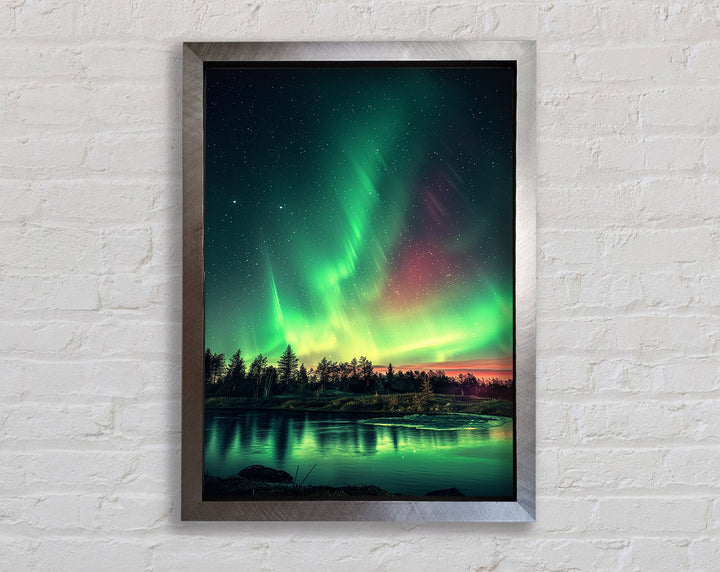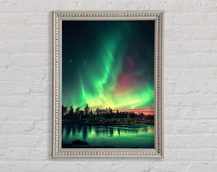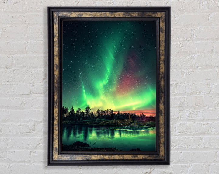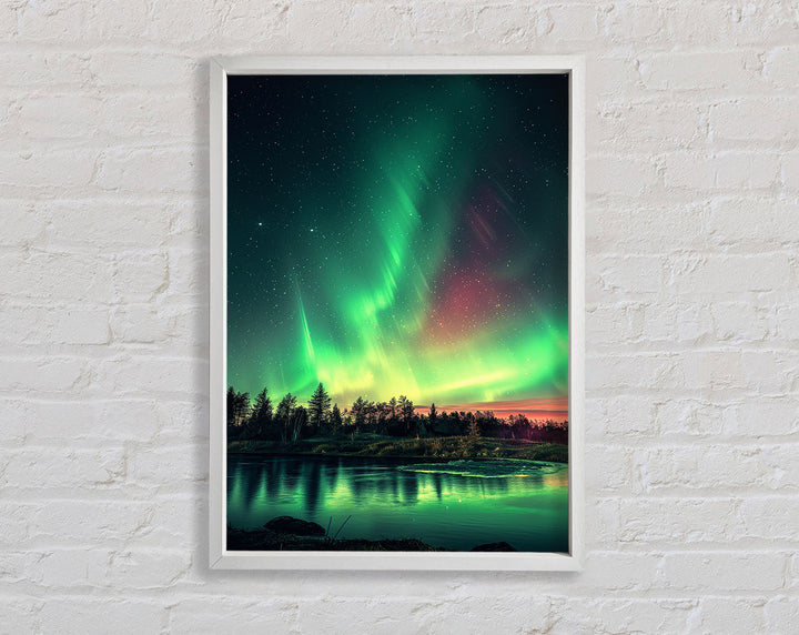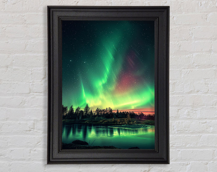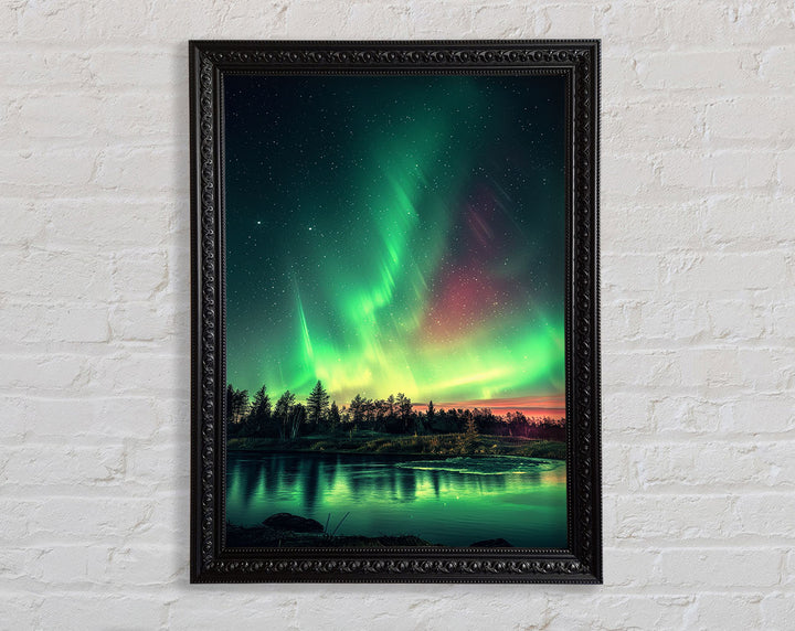 Capture the magic of the night sky with our Northern Lights Framed Print. This stunning piece of framed art is available in six sizes, ranging from small to oversized, ensuring a perfect fit for any space. Handcrafted in the United Kingdom, each print is made with meticulous attention to detail, highlighting the vibrant colors and mesmerizing patterns of the Northern Lights.