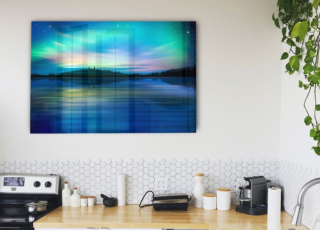 Northern Lights Lake Dream acrylic print, UV printed onto 5mm thick acrylic glass. Comes with everything you need to hang on your wall.