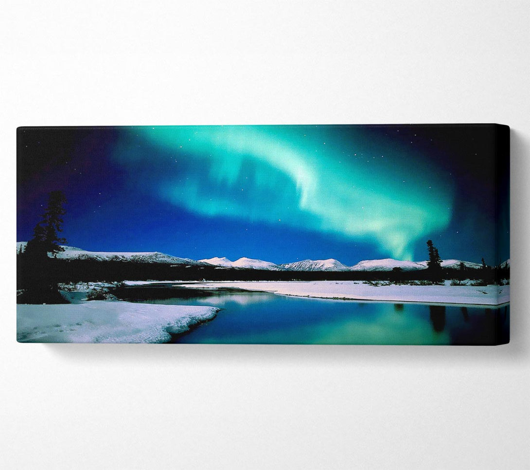 Picture of Northern Lights Lake View Panoramic Canvas Wall Art