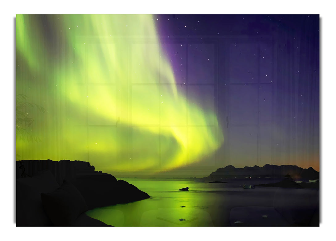Northern Lights River Flow acrylic print, UV printed onto 5mm thick acrylic glass. Comes with everything you need to hang on your wall.
