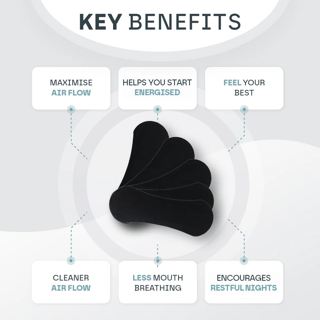 Our Nasal Strips gently support nasal airflow for more comfortable breathing, day or night. Lightweight, discreet, and easy to apply—ideal for everyday routines and restful evenings.