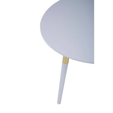 This round coffee table will make a chic centrepiece in your living room with its contrasting grey and gold hues. The wood veneer top in muted grey finish is supported by slanted natural wood legs in matching colour offering a low profile to the table. The legs of this grey coffee table feature gold finish metal bands at the top creating a luxe accent, making it perfect for contemporary living rooms.