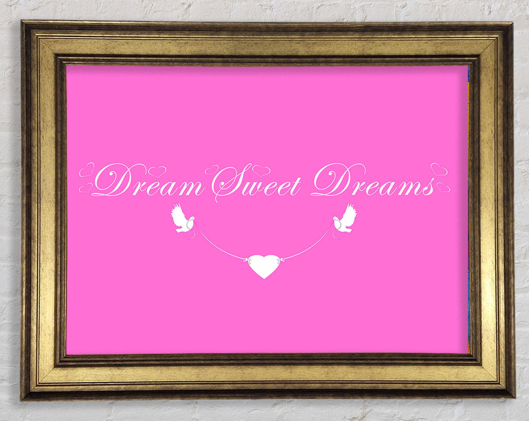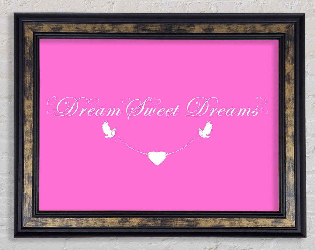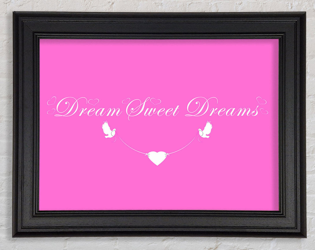 Nursery Quote Dream Sweet Dreams Vivid Pink Framed Print