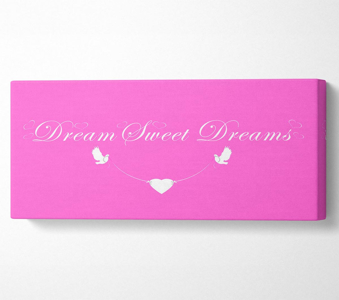 Picture of Nursery Quote Dream Sweet Dreams Vivid Pink Panoramic Canvas Wall Art