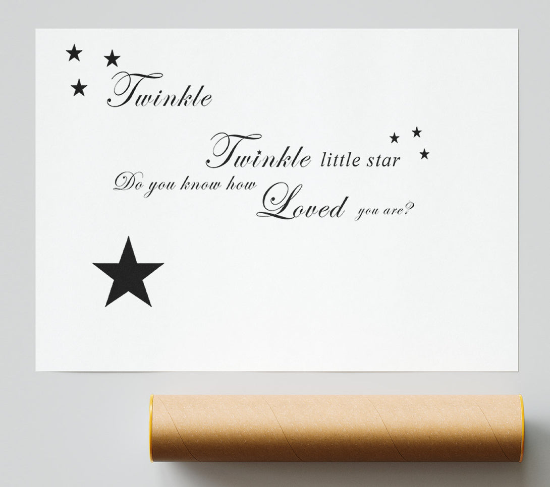 Our Nursery Quote Twinkle Twinkle Little Star 1 White Poster is printed 260 GSM premium lustre paper that offers vibrant colours and exceptional detail.