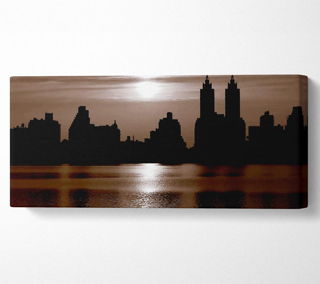 Nyc Brown Skyline canvas, printed on coated polyester canvas. Mounted on to a 44mm box frame, ready to hang.