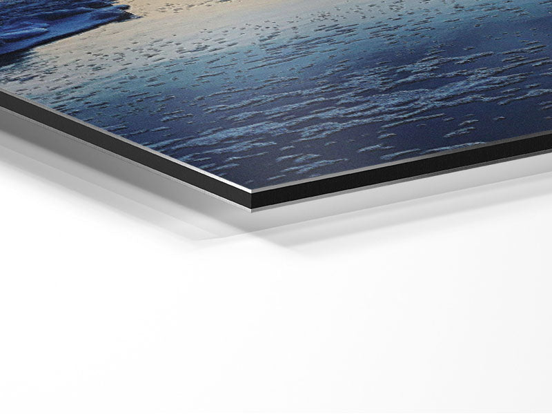 Ocean At Dusk Printed on brushed aluminium dibond. A modern way to display art and easy to maintain.