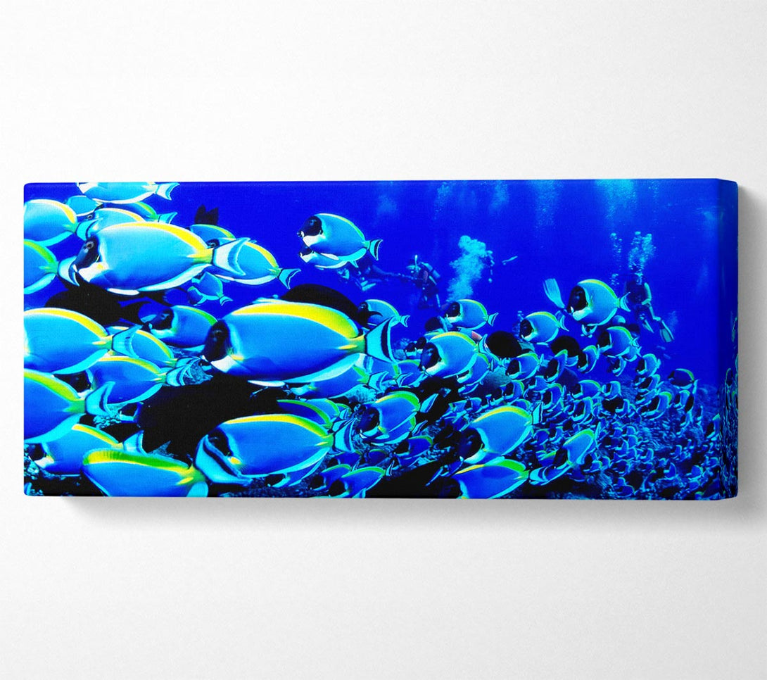 Ocean Fun canvas, printed on coated polyester canvas. Mounted on to a 44mm box frame, ready to hang.