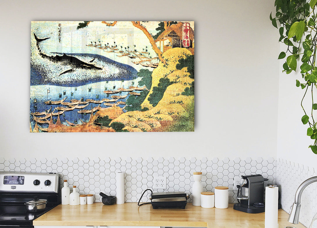 Ocean Landscape And Whale By Hokusai acrylic print, UV printed onto 5mm thick acrylic glass. Comes with everything you need to hang on your wall.