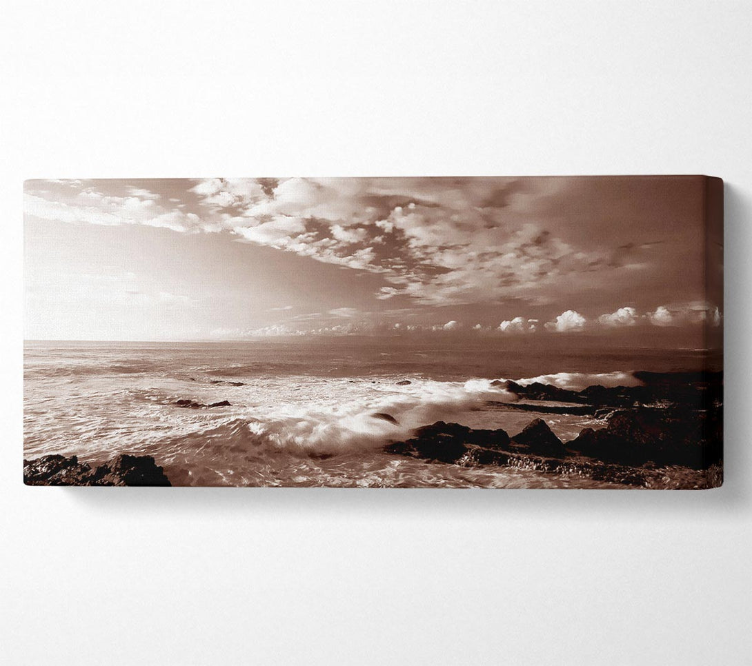 Picture of Ocean Mist Sepia Panoramic Canvas Wall Art