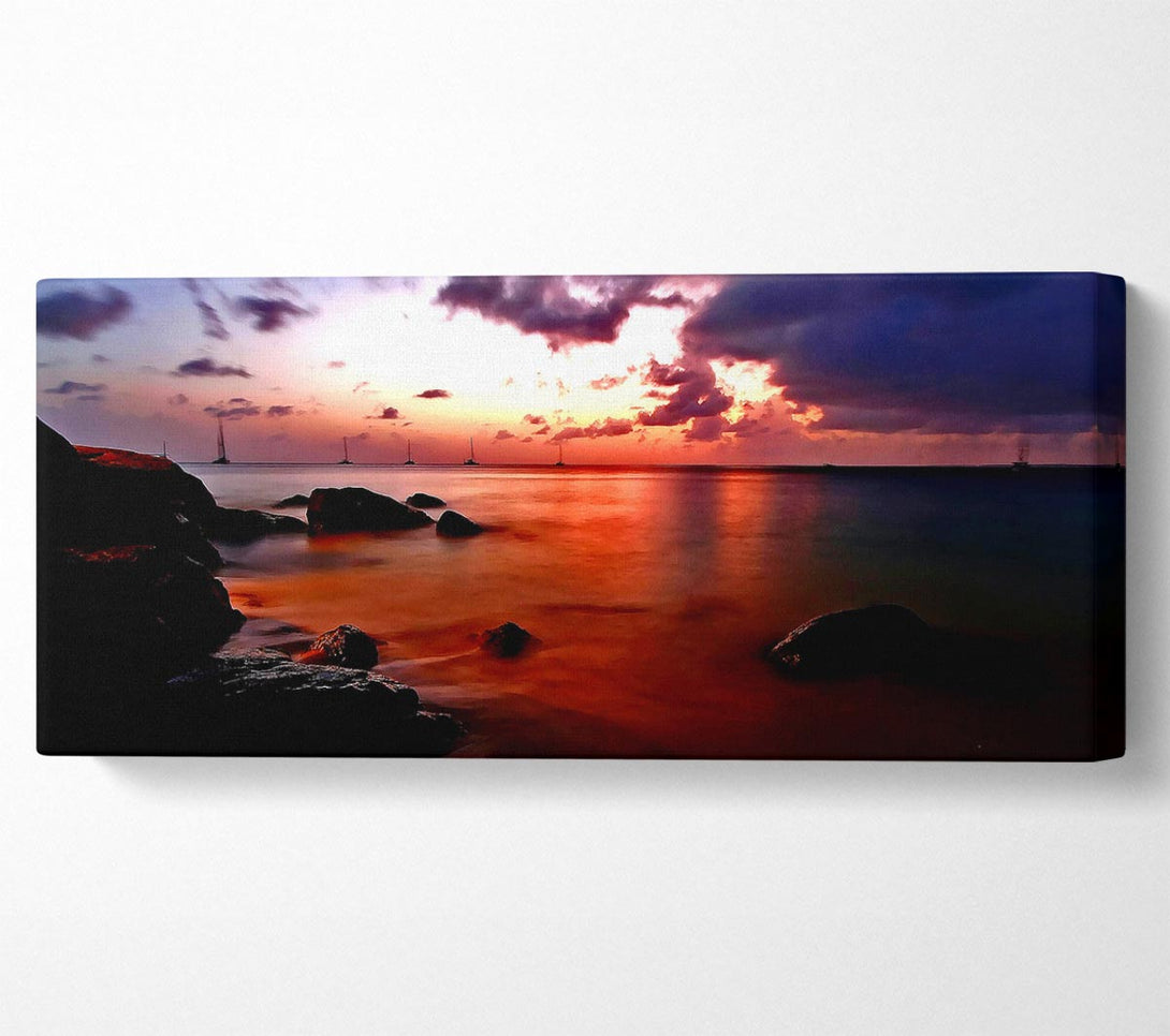 Ocean Red canvas, printed on coated polyester canvas. Mounted on to a 44mm box frame, ready to hang.