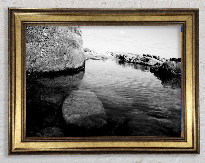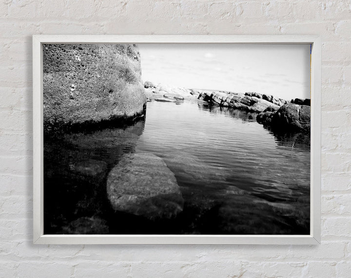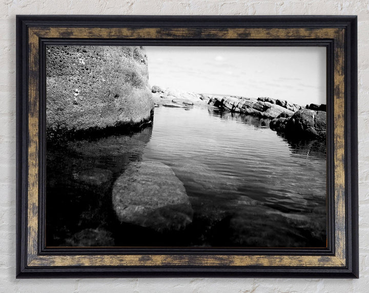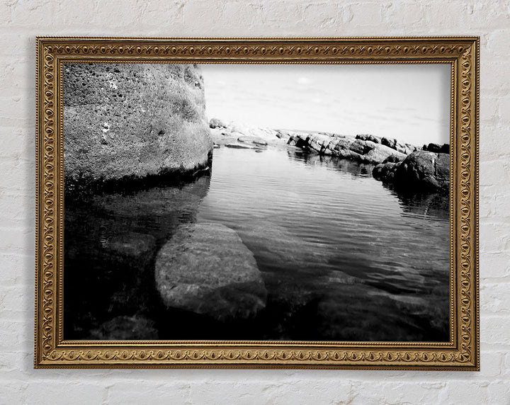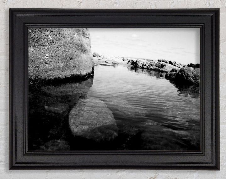 Ocean Rock Bay B n W Framed Print