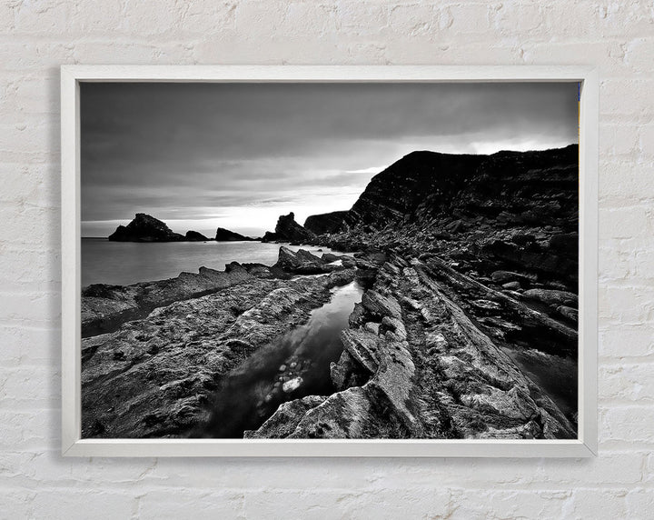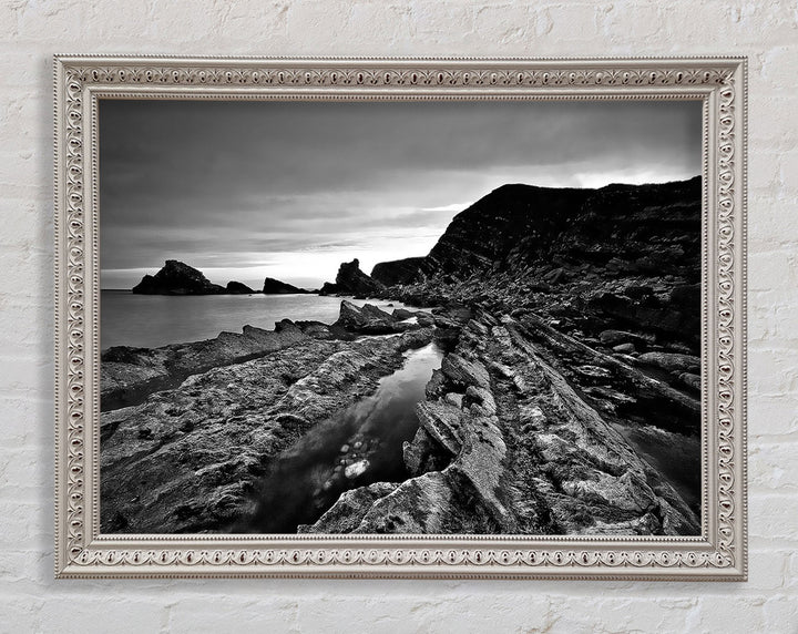 Ocean Rock Formation B n W Framed Print