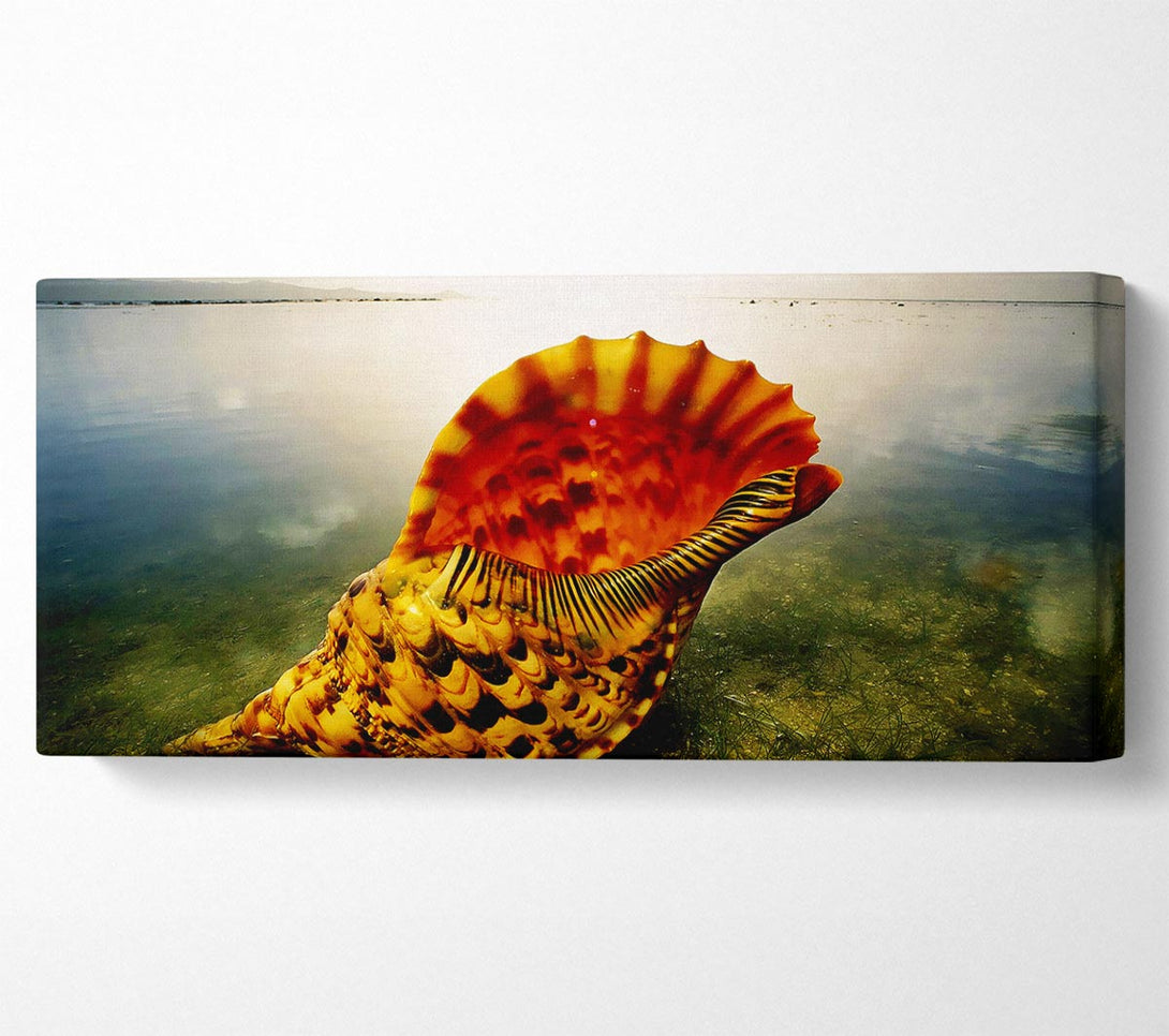 Ocean Shell canvas, printed on coated polyester canvas. Mounted on to a 44mm box frame, ready to hang.
