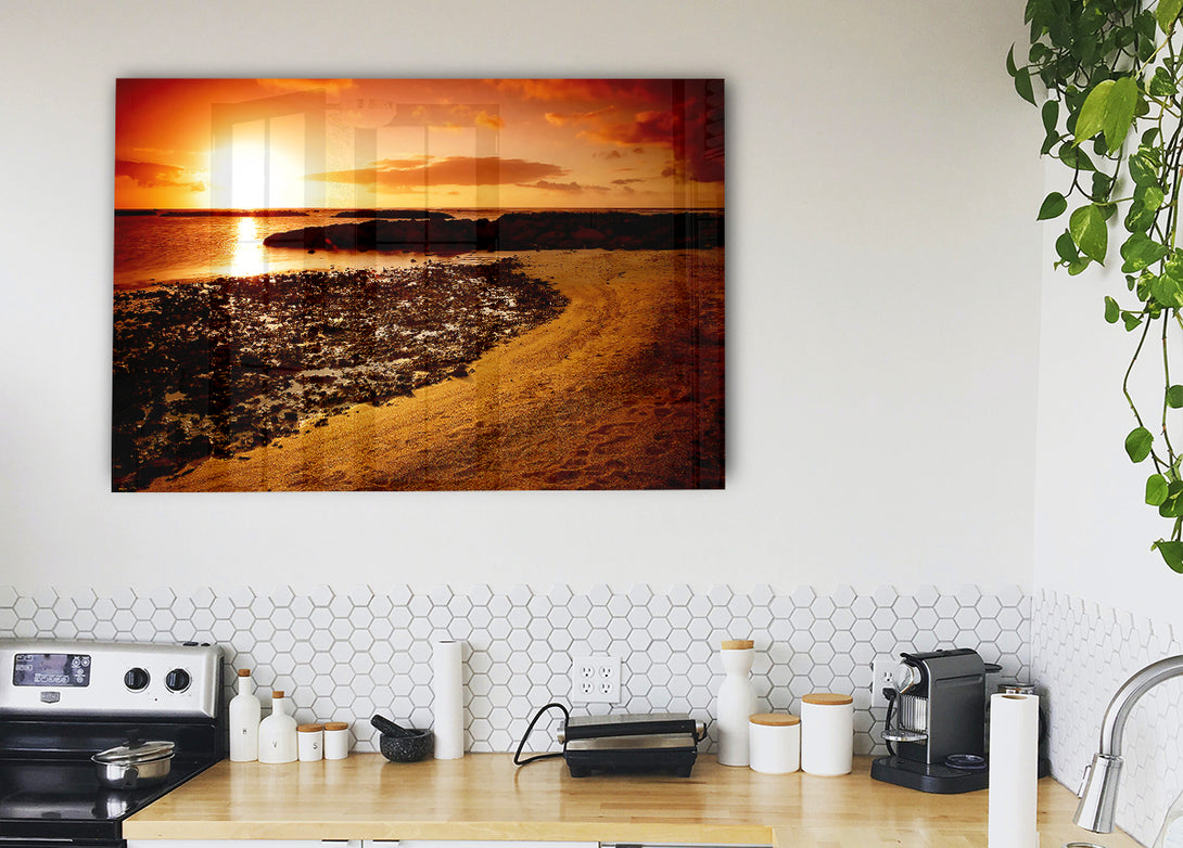 Ochre Ocean Sunset acrylic print, UV printed onto 5mm thick acrylic glass. Comes with everything you need to hang on your wall.