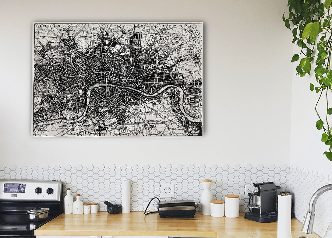 Old Map Of London acrylic print, UV printed onto 5mm thick acrylic glass. Comes with everything you need to hang on your wall.