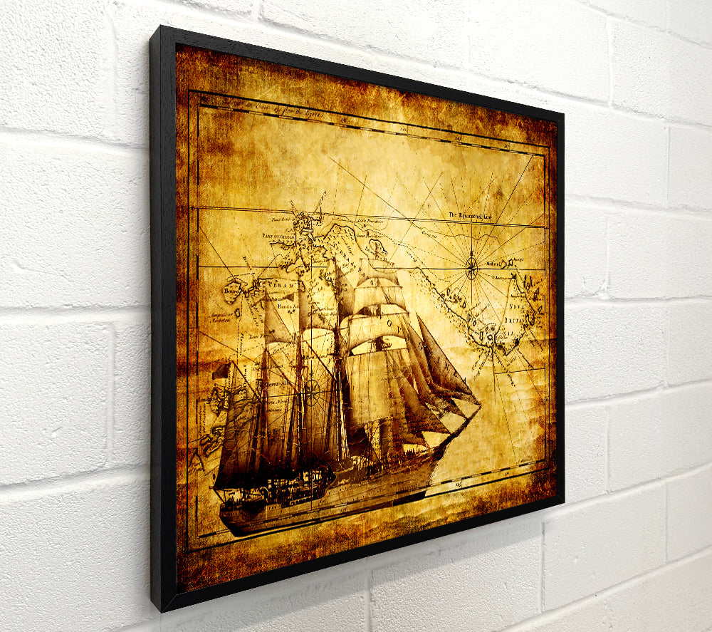 Old World Map With Ship