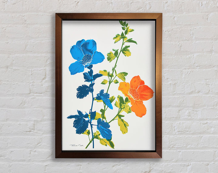 Brighten up any room with our stunning Orange And Blue Flowers Framed Print. This handmade framed art features vibrant orange and blue flowers, perfect for adding a pop of color to your space. Available in six sizes, from small to oversized, you can find the perfect fit for any wall. The framed print comes ready to hang, making it easy to decorate your home or office. Crafted with care in the United Kingdom, each piece is unique and showcases exceptional quality. Choose from a variety of frame colors to match your decor. Elevate your interior with this beautiful and lively art piece today!