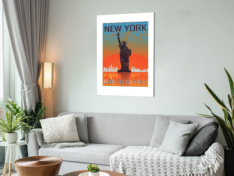 Orange Blue Statue of Liberty Printed on brushed aluminium dibond. A modern way to display art and easy to maintain.