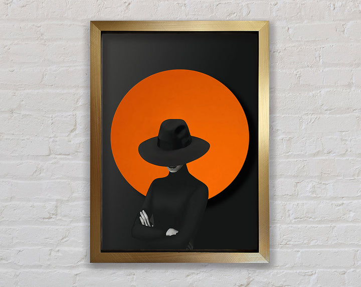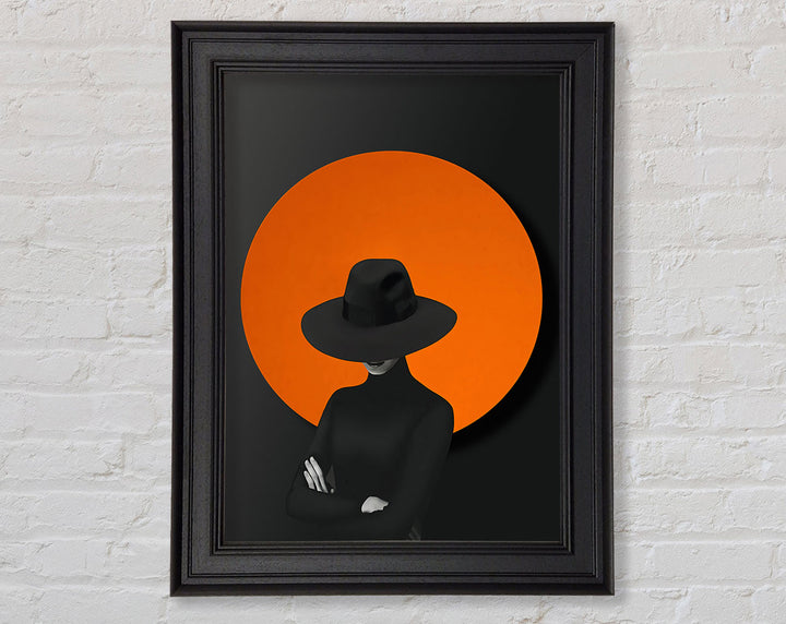 The Orange Circle Lady In Black Hat Framed Print is a stunning piece of framed art that will add a touch of elegance to any room. This artwork features a sophisticated lady in a black hat, set against a vibrant orange background. Available in six different sizes, from small to oversized, this print can fit perfectly into any space, whether it's a cozy corner or a large wall.