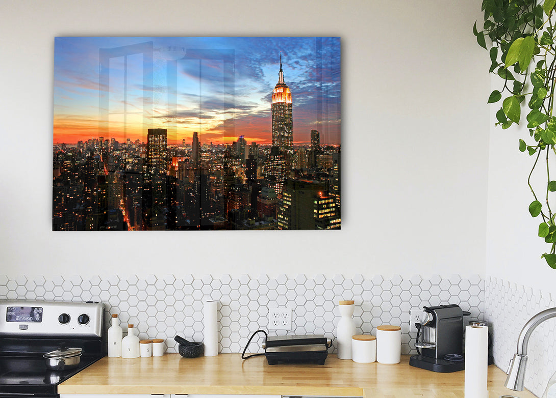 Orange City Glow acrylic print, UV printed onto 5mm thick acrylic glass. Comes with everything you need to hang on your wall.