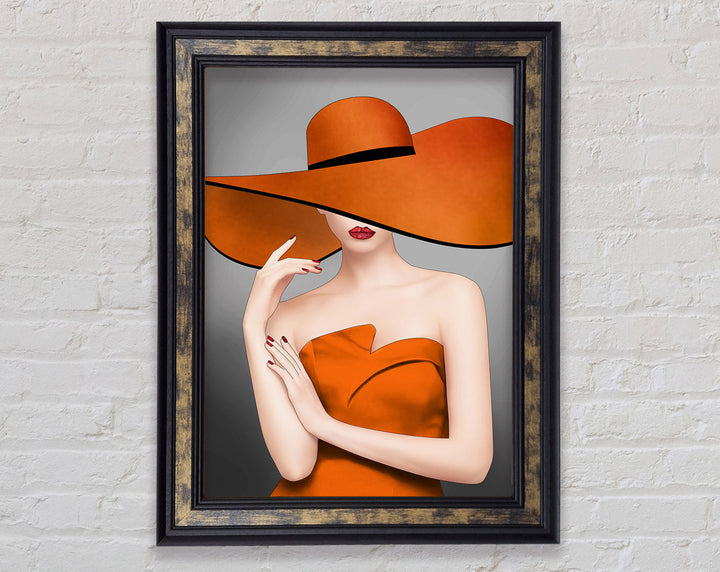 Add a touch of elegance to your home with our Orange Dress And Hat Framed Print. This framed art piece captures a stylish and timeless fashion scene. Available in 6 sizes, from small to oversized, it fits perfectly in any room. Choose from a variety of frame colors to match your decor. Each item is ready to hang, making it easy to enhance your space instantly.