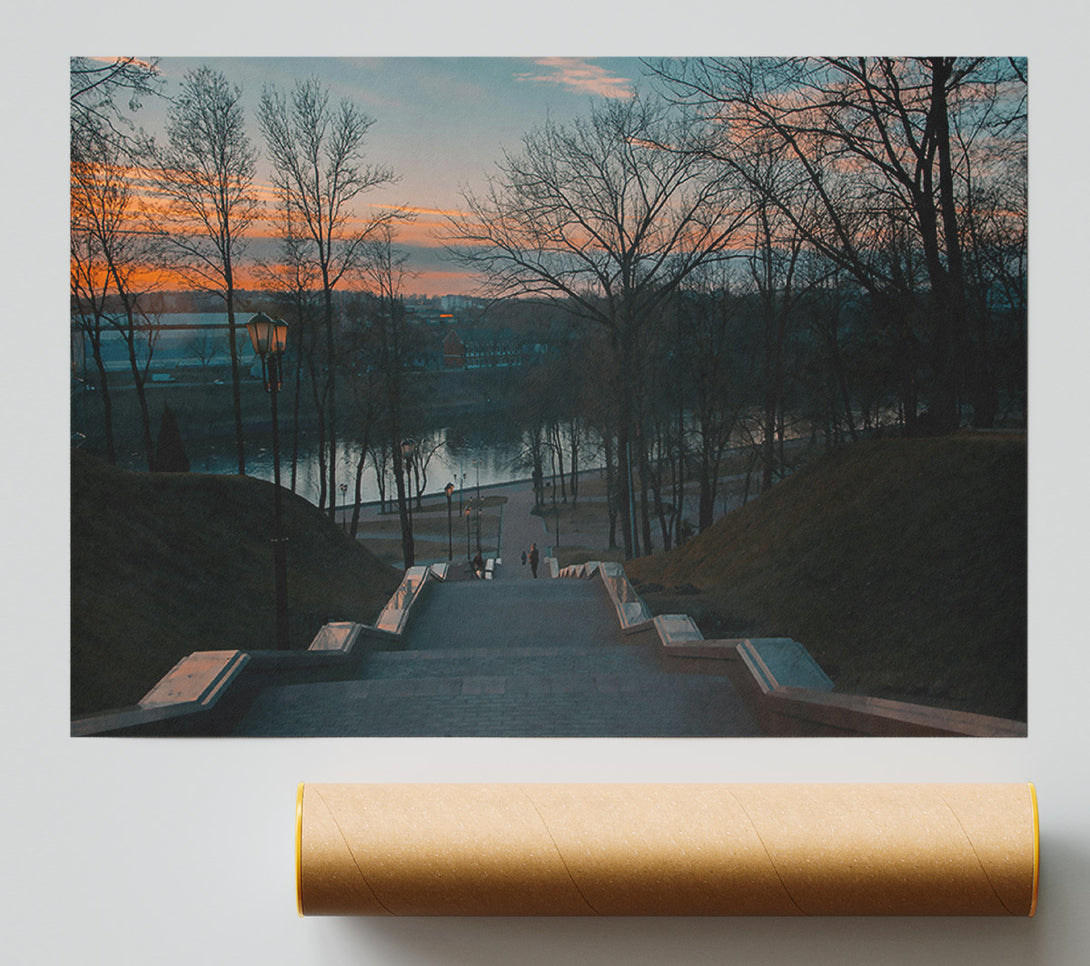 Our Orange Dusk Steps Poster is printed 260 GSM premium lustre paper that offers vibrant colours and exceptional detail.