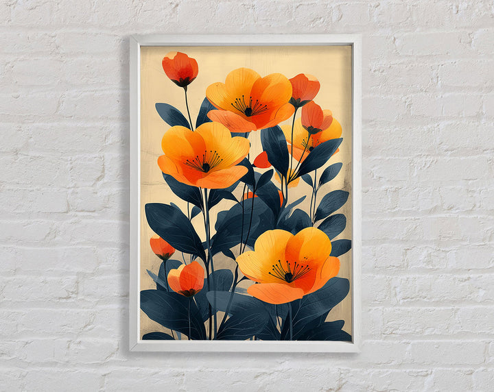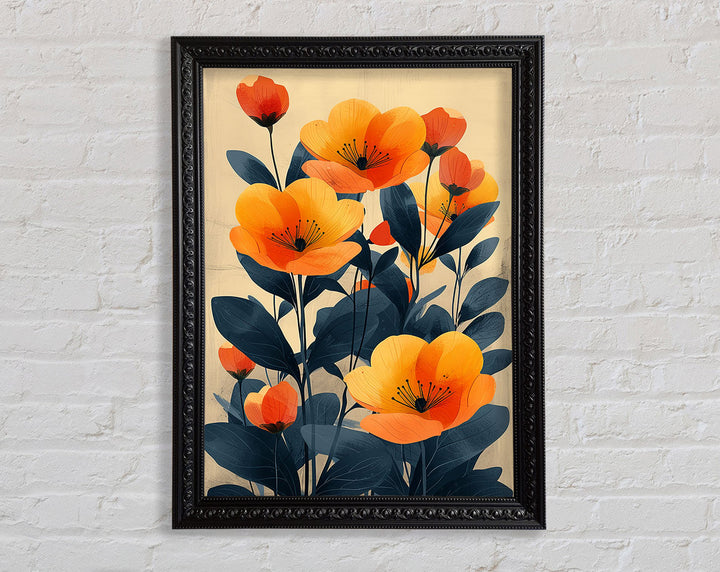Every print is handmade with care in the United Kingdom, ensuring top-notch quality and craftsmanship. Ready to hang straight out of the box, this framed art makes decorating hassle-free. Whether for your living room, bedroom, or office, this beautiful piece adds a touch of nature and elegance to your environment. Transform your space effortlessly with the "Orange Flowers Everywhere" Framed Print.