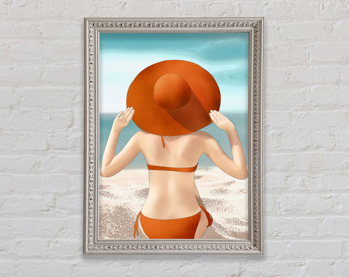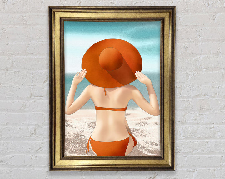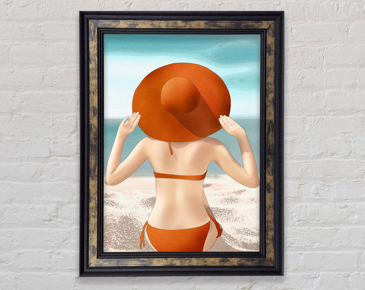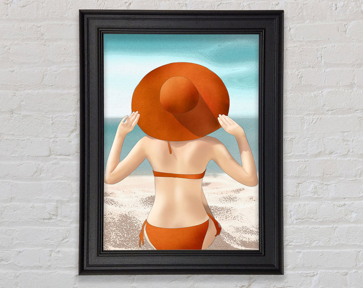 Introducing the "Orange Hat On The Beach" Framed Print, a stunning piece of framed art that brings the serenity of the shore into your home. This unique artwork captures the tranquil beauty of a beach scene, highlighted by a striking orange hat, making it a perfect focal point for any room. Available in six sizes, from small to oversized, you can choose the perfect fit for your space. With a variety of frame colors, it seamlessly matches any décor. Each piece is handmade in the United Kingdom with meticulous attention to detail, ensuring high quality. Ready to hang, this framed art makes decorating effortless and elegant.