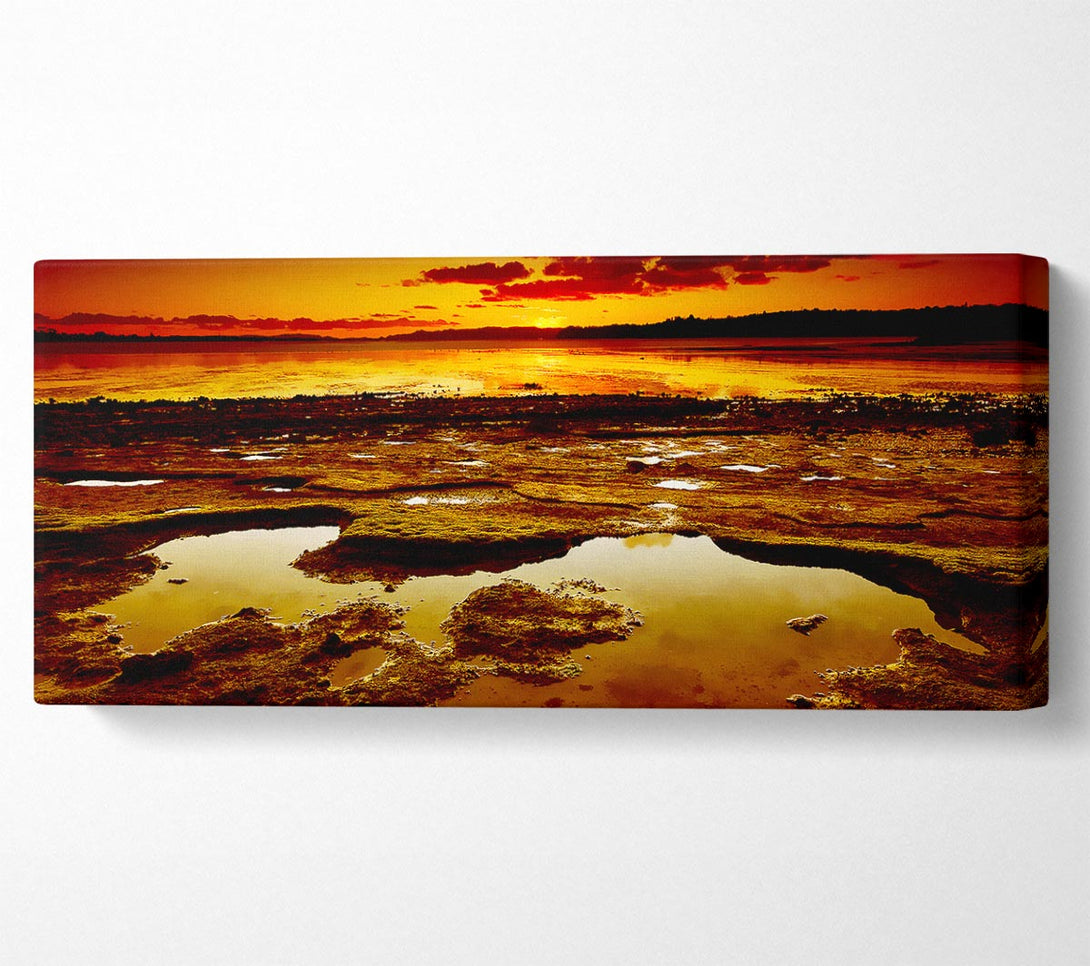 Orange Ocean Daybreak canvas, printed on coated polyester canvas. Mounted on to a 44mm box frame, ready to hang.