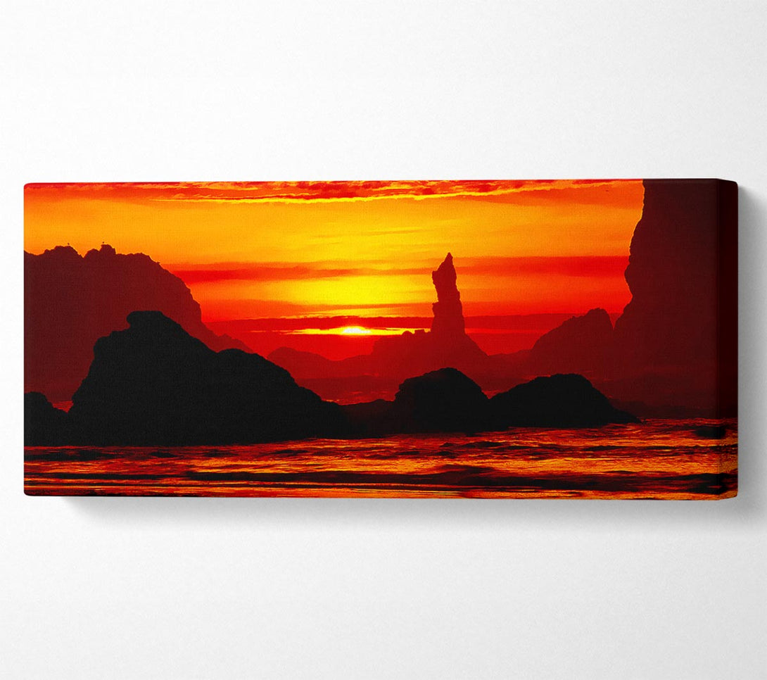 Orange Ocean Monuments canvas, printed on coated polyester canvas. Mounted on to a 44mm box frame, ready to hang.
