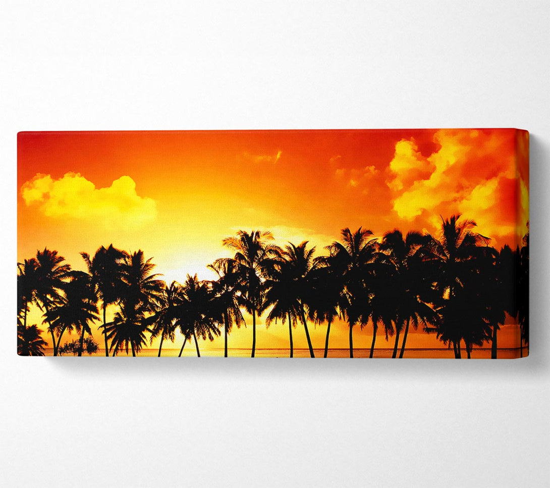 Picture of Orange Palm Tree Sunset Panoramic Canvas Wall Art