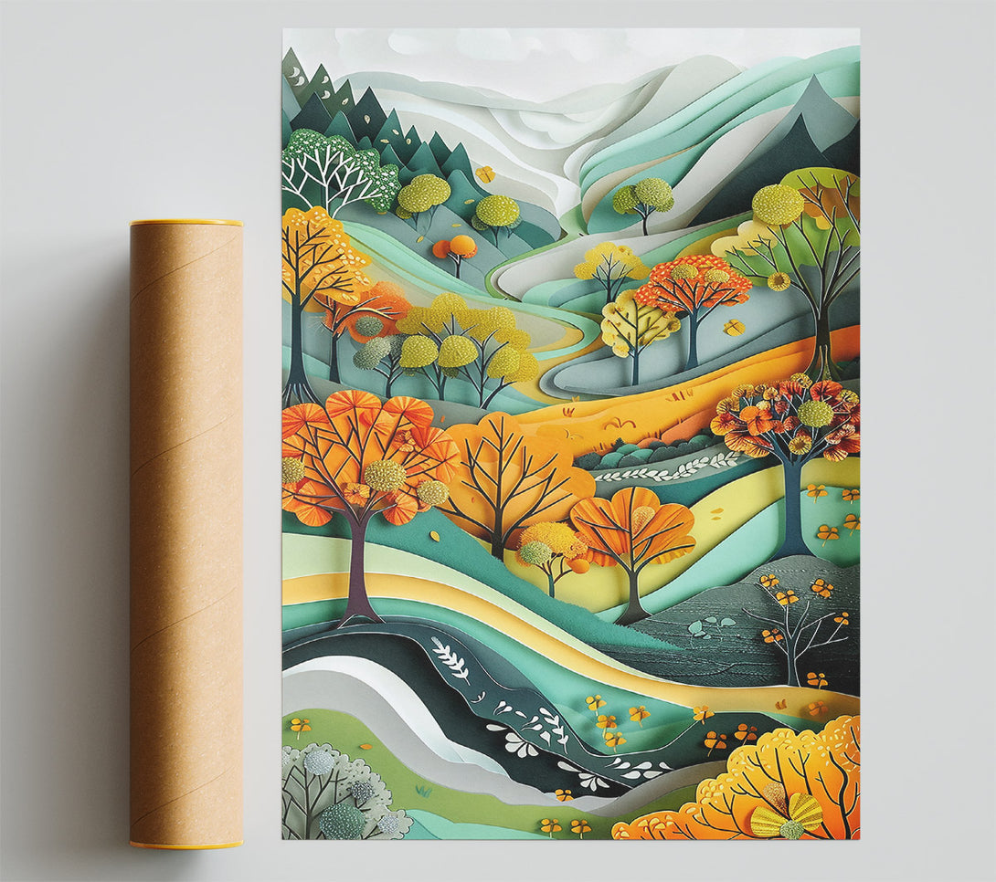 Our Orange Papercut Hills Poster is printed 260 GSM premium lustre paper that offers vibrant colours and exceptional detail.