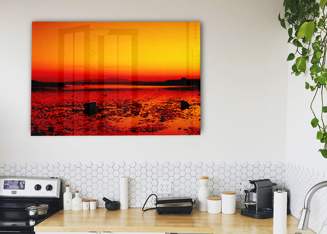 Orange Red Ocean Surprise acrylic print, UV printed onto 5mm thick acrylic glass. Comes with everything you need to hang on your wall.