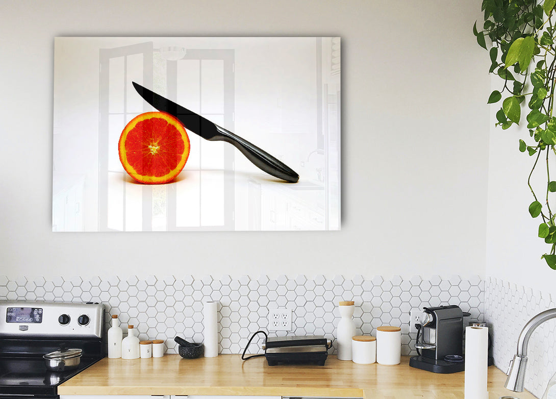 Orange Segment acrylic print, UV printed onto 5mm thick acrylic glass. Comes with everything you need to hang on your wall.