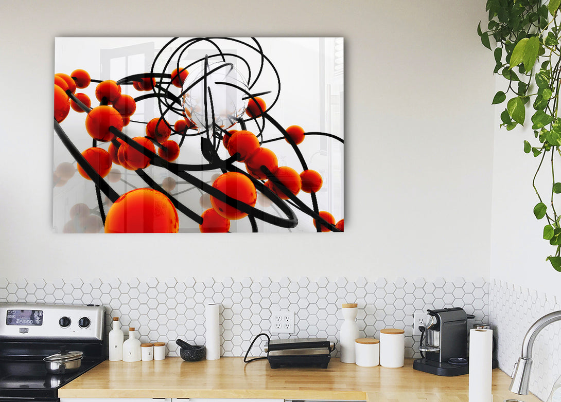 Orange Spheres acrylic print, UV printed onto 5mm thick acrylic glass. Comes with everything you need to hang on your wall.