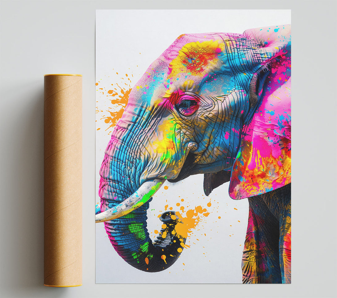 Our Orange Splashed Elephant Poster is printed 260 GSM premium lustre paper that offers vibrant colours and exceptional detail.