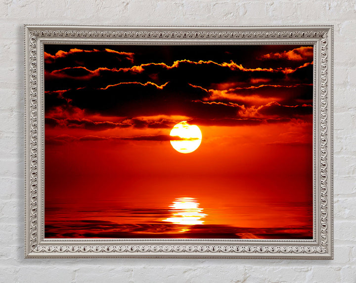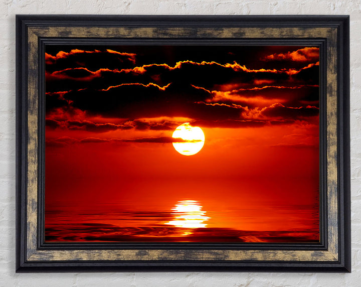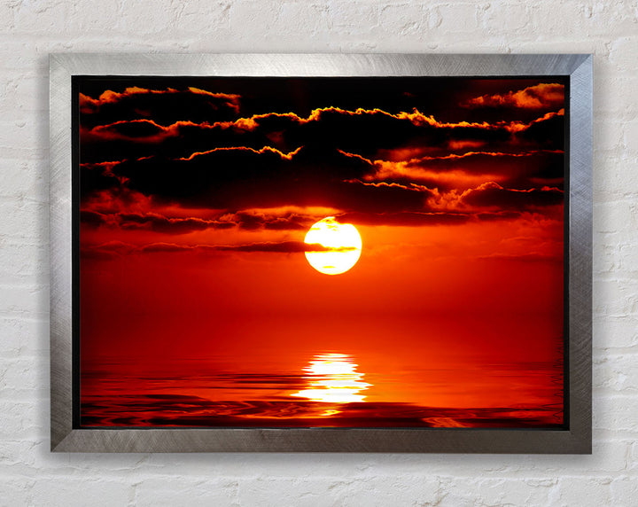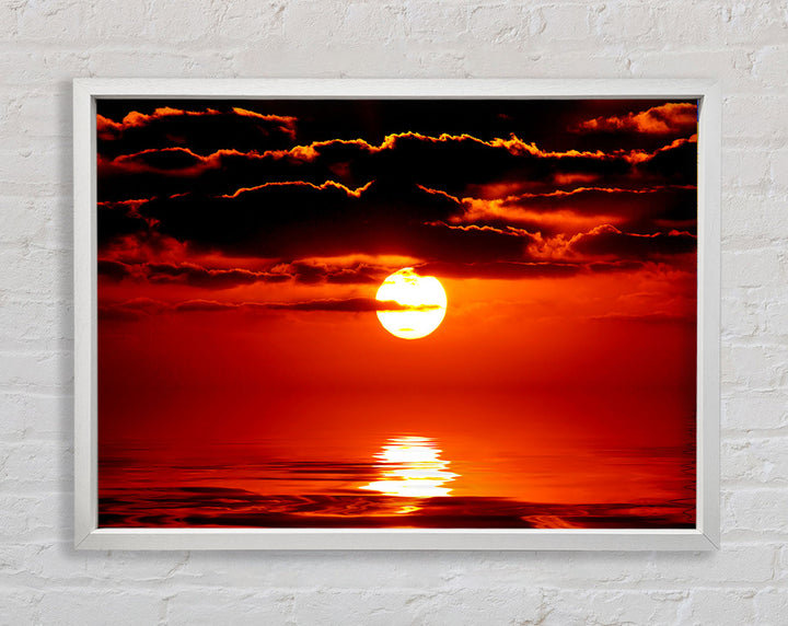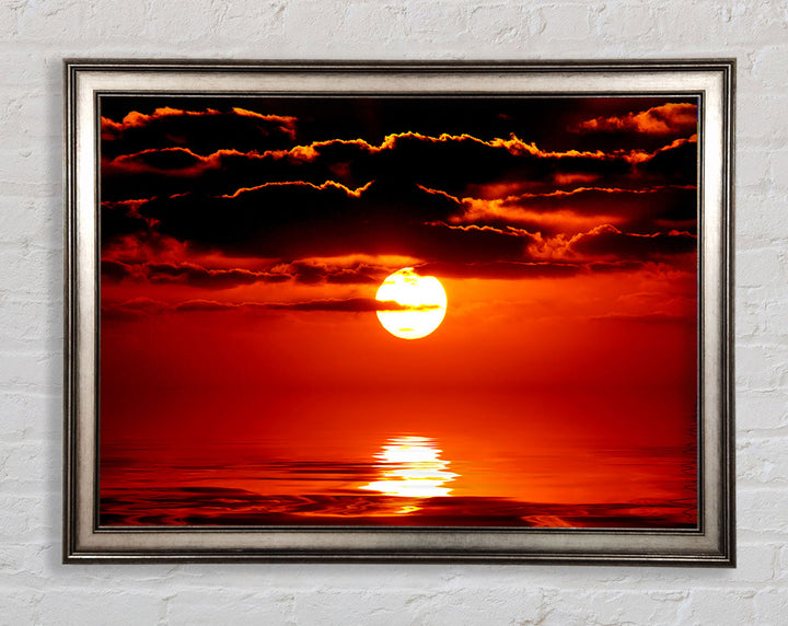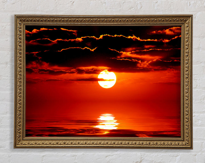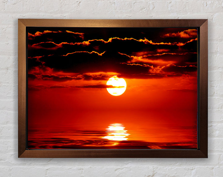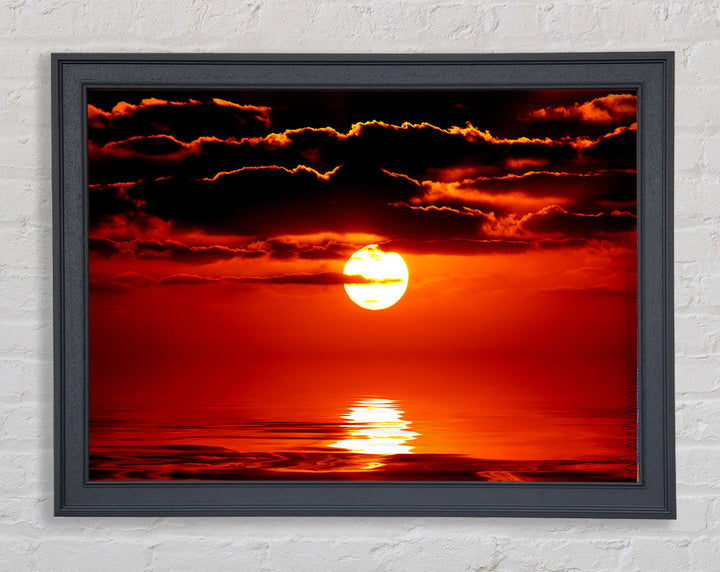 Brighten up your space with the Orange Sun Clouds Over The Ocean Framed Print. This stunning piece of framed art captures a breathtaking sunset, making it a perfect addition to any room. Available in six sizes, from small to oversized, it fits any wall space effortlessly. Choose from a variety of frame colors to match your decor. Each print is handmade in the United Kingdom, ensuring high quality and craftsmanship. Ready to hang, this framed art offers both beauty and convenience. Transform your home or office with this captivating scene and enjoy the calming effect of nature every day.