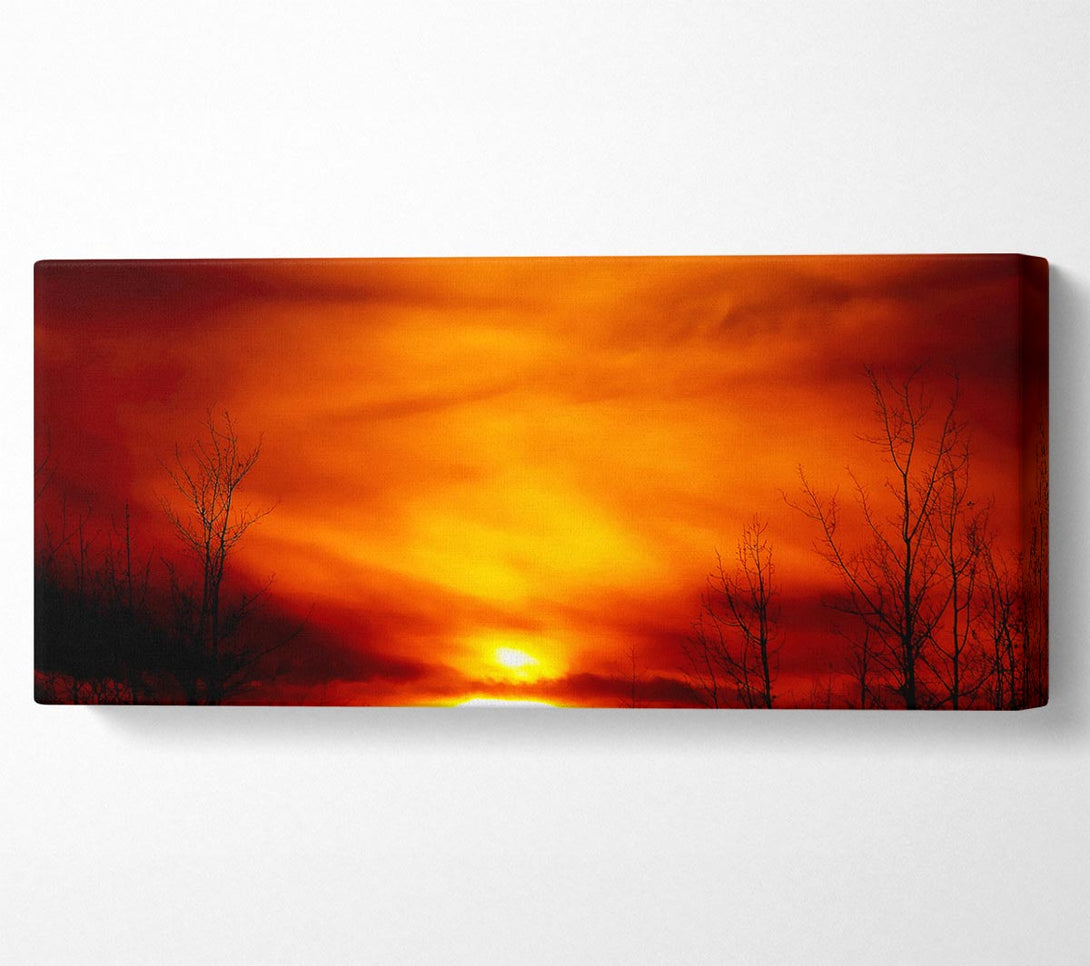 Picture of Orange Sunblaze Through The Misty Sky Panoramic Canvas Wall Art