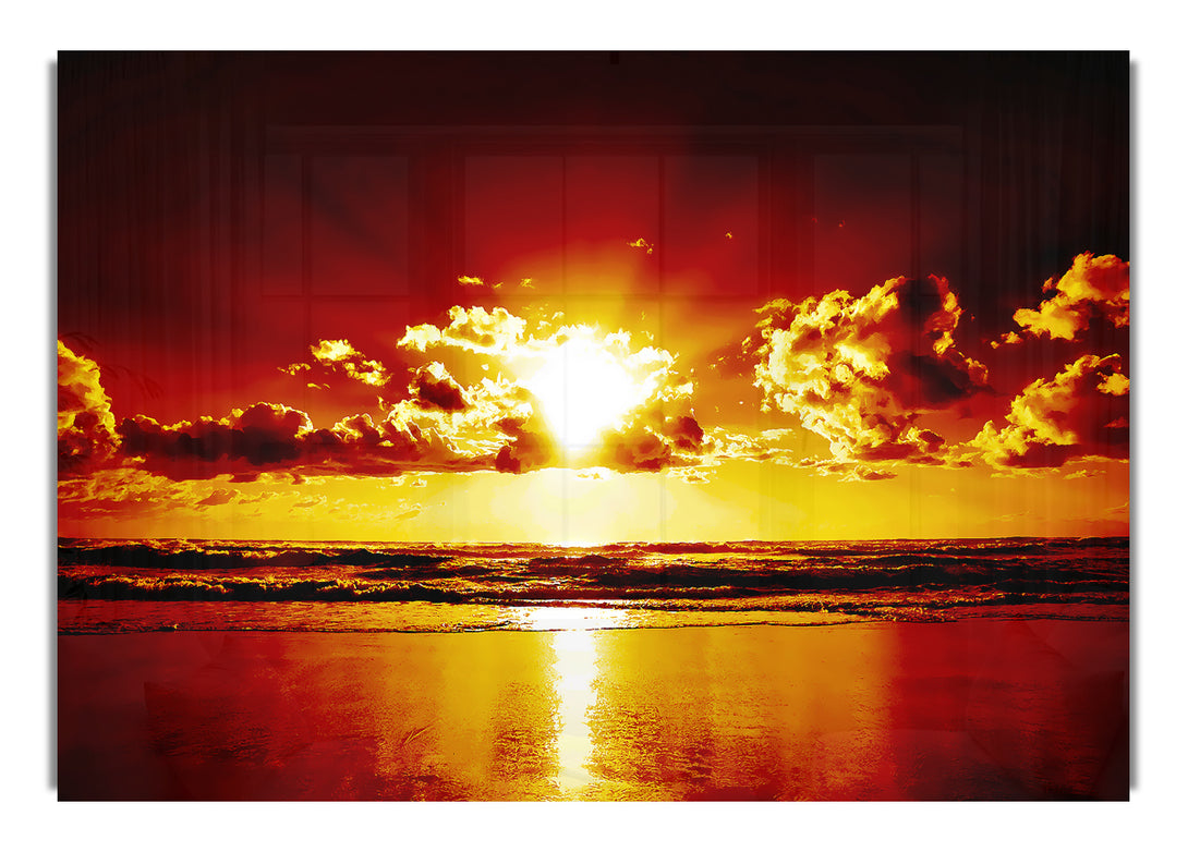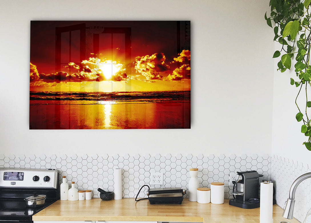 Orange Sunrise Ocean acrylic print, UV printed onto 5mm thick acrylic glass. Comes with everything you need to hang on your wall.