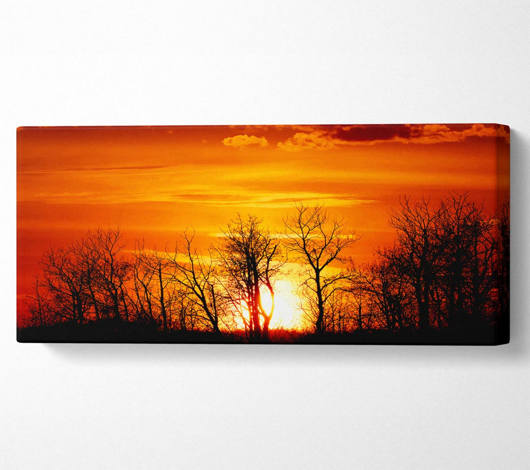 Picture of Orange Sunset Treeline Panoramic Canvas Wall Art
