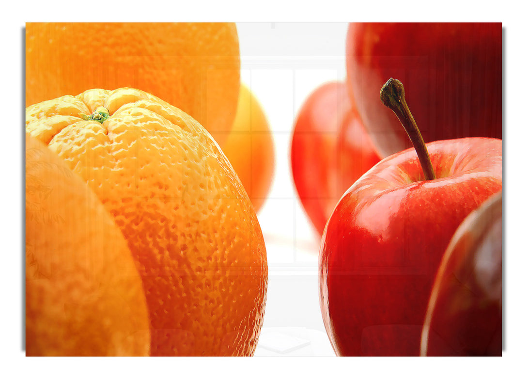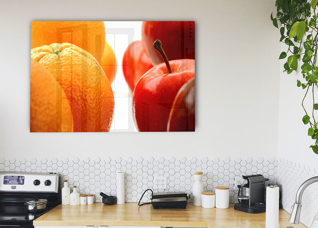 Oranges And Apples acrylic print, UV printed onto 5mm thick acrylic glass. Comes with everything you need to hang on your wall.