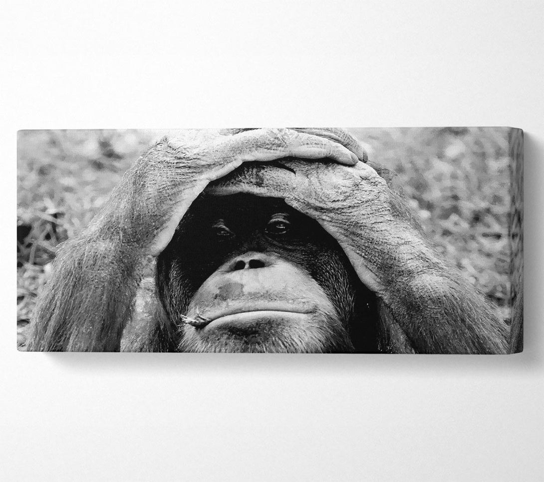 Orangutan Mishap canvas, printed on coated polyester canvas. Mounted on to a 44mm box frame, ready to hang.