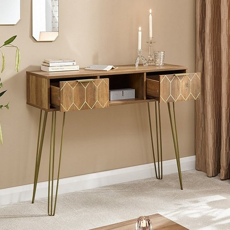 Orleans Console Table Natural 1 Shelf 2 Drawers