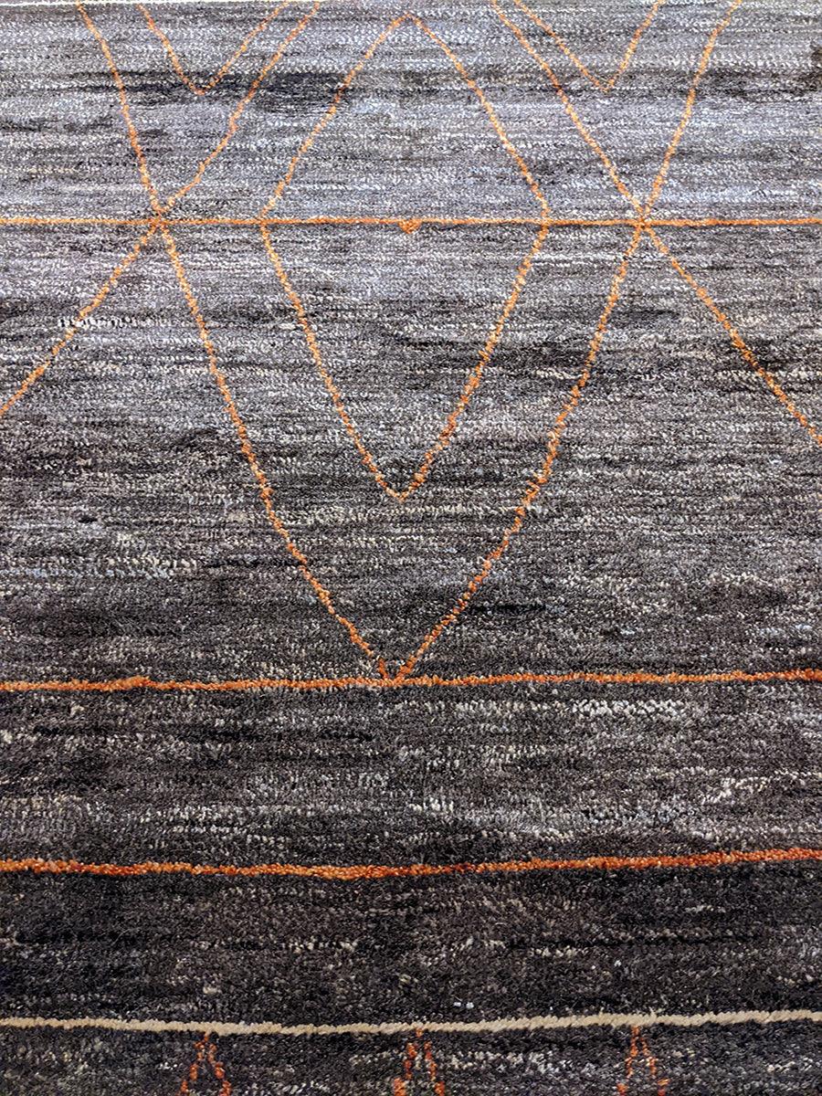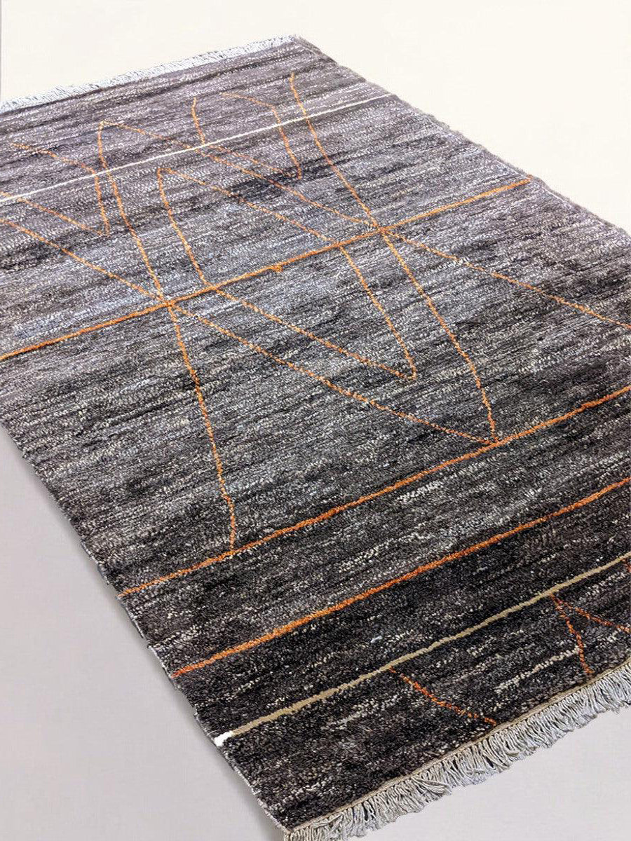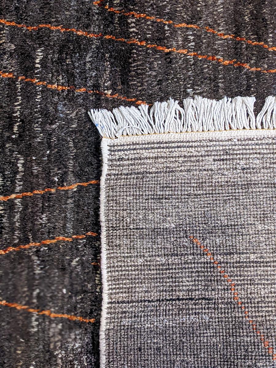This hand-knotted Ouarzazate rug is expertly crafted with wool and features modern details. The rug's unique brown colour with an abrish effect adds a touch of modernism with Moroccan-inspired flair to your space.