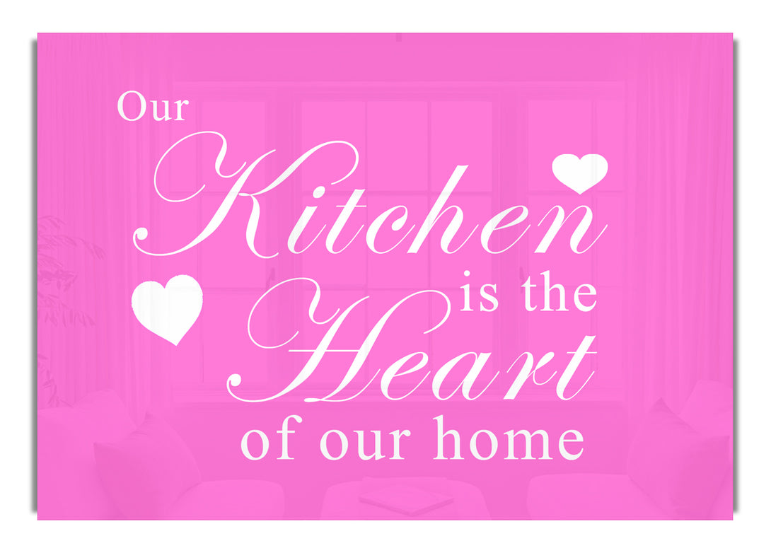 Our Kitchen Is The Heart Vivid Pink acrylic print, UV printed onto 5mm thick acrylic glass. Comes with everything you need to hang on your wall.